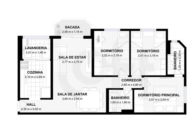 Área total: 70m²Características do imóvel