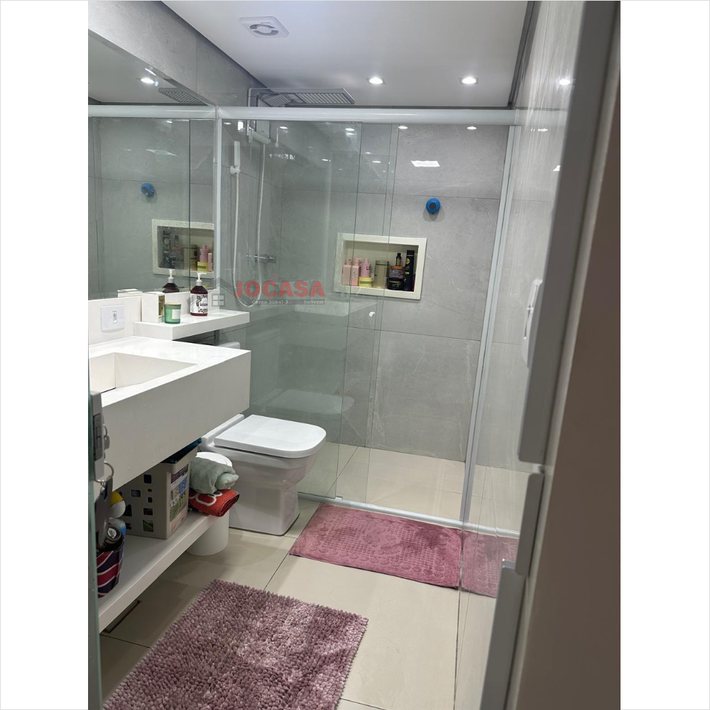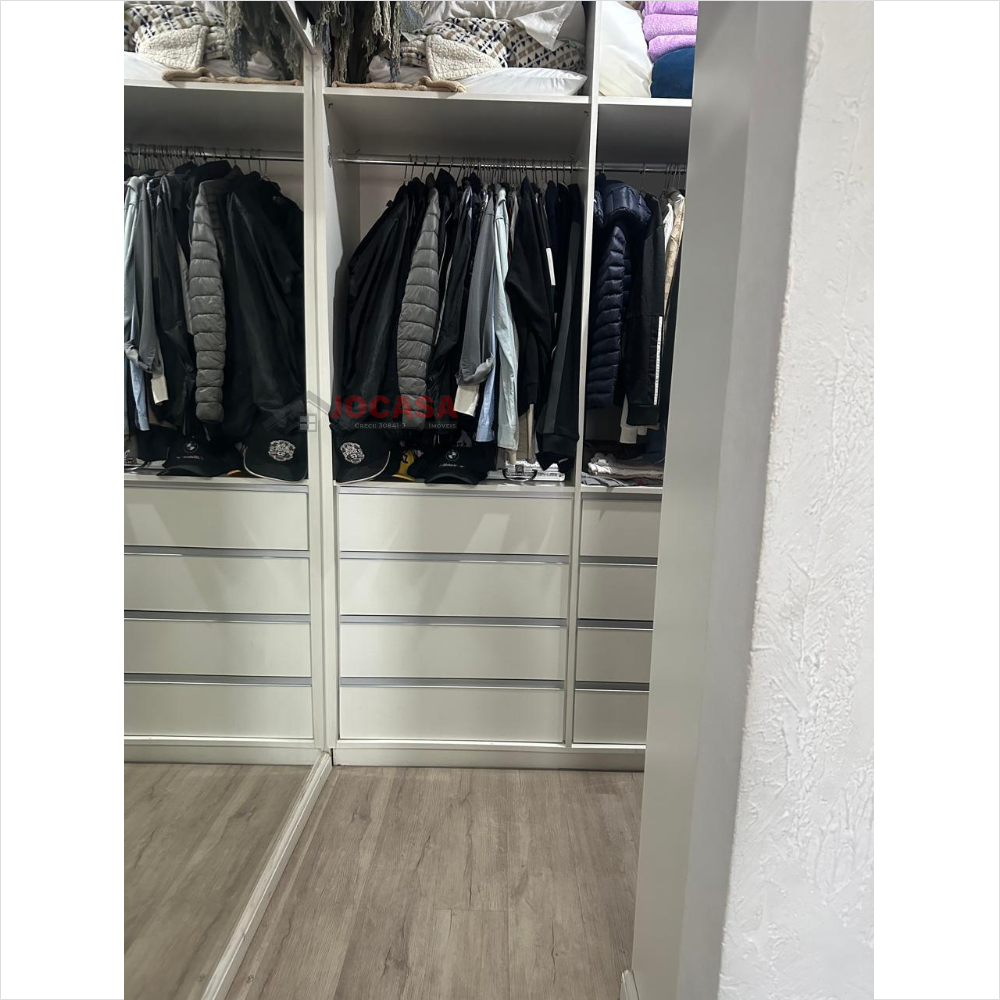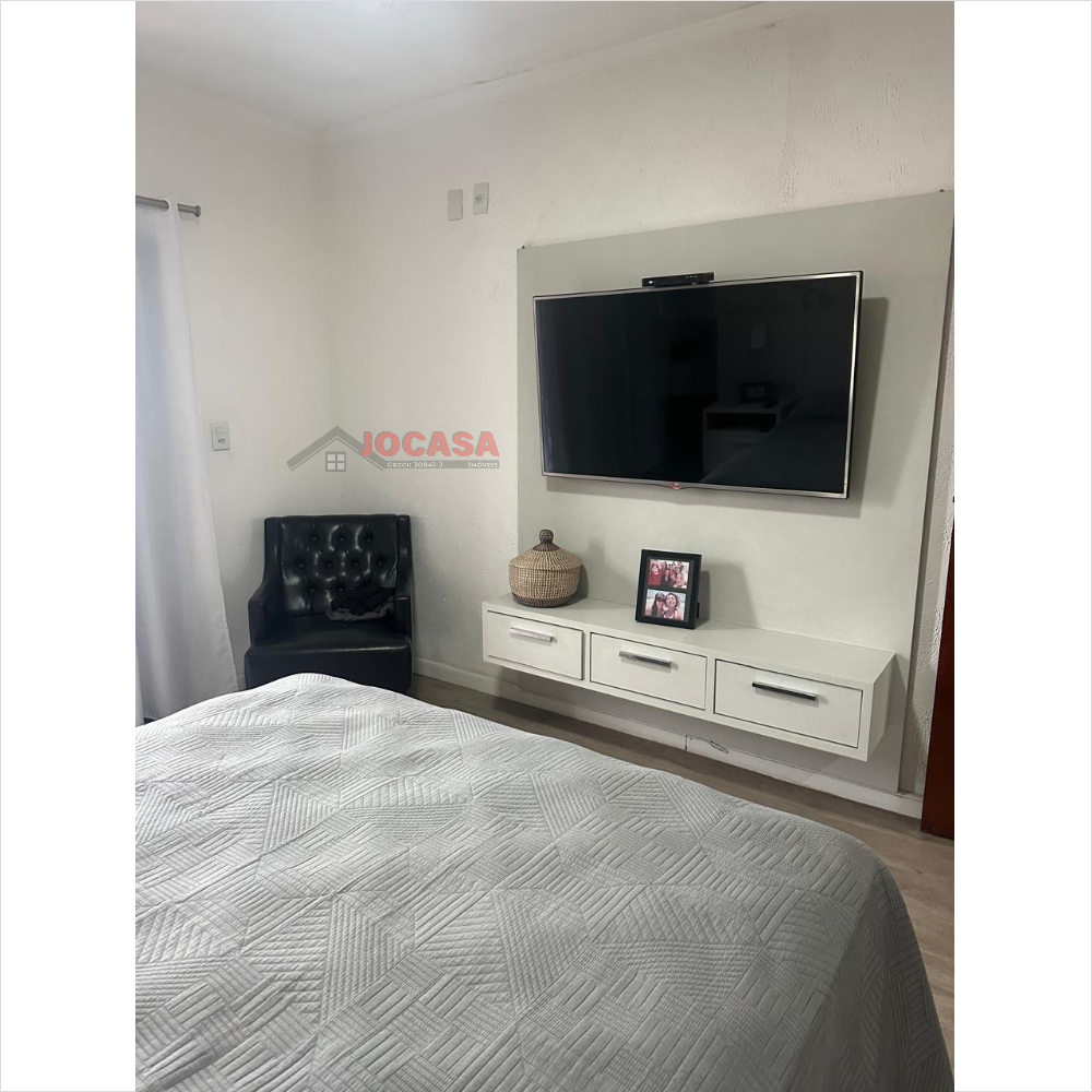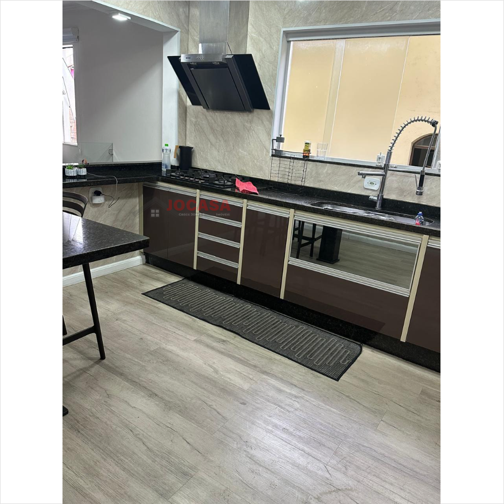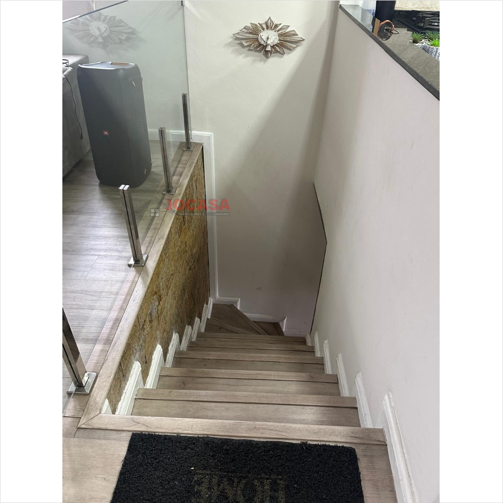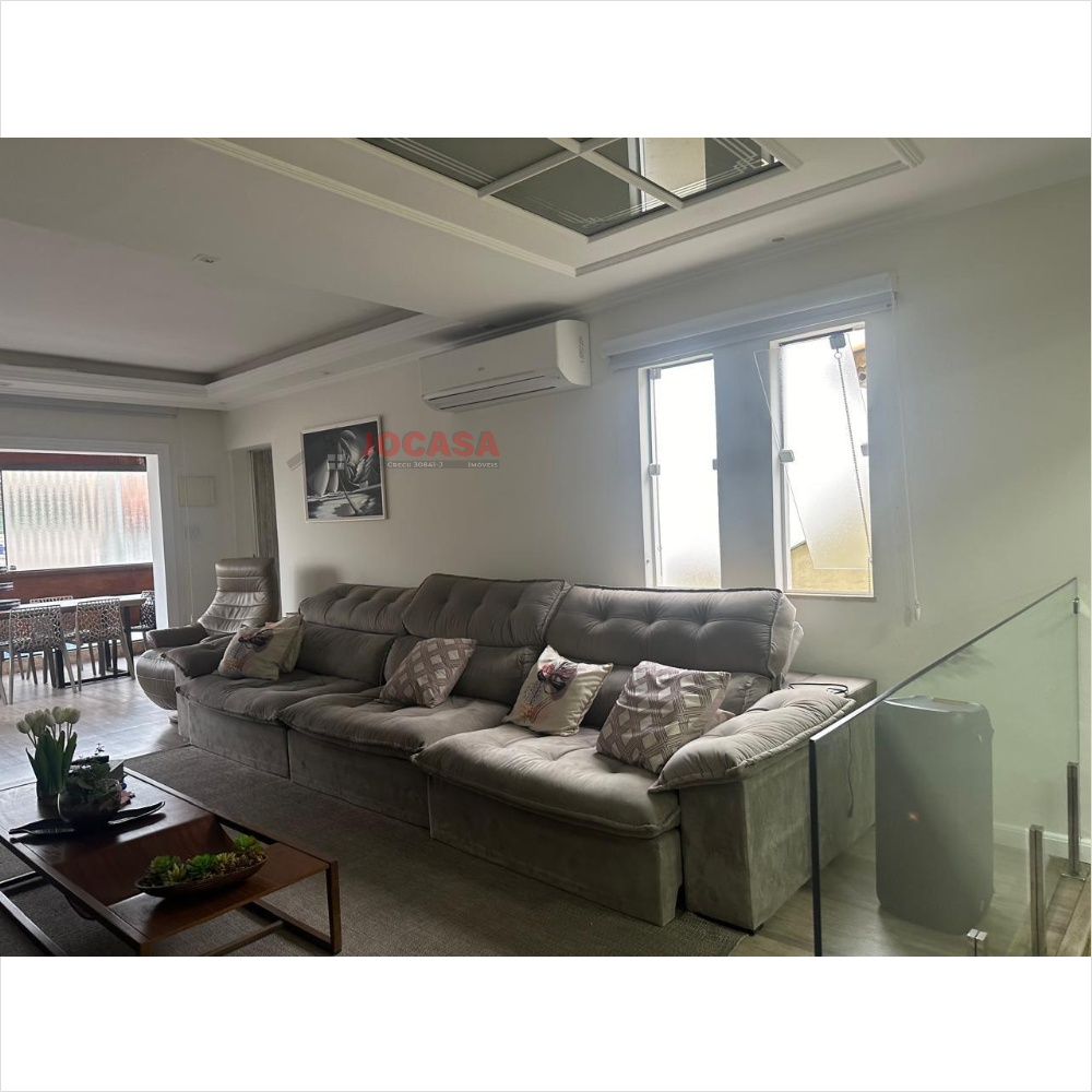 No andar superior, há duas suítes amplas, ambas com closet, sendo que a suíte principal inclui uma charmosa varanda. Este andar conta com armários embutidos, lavanderia coberta com fechamento em vidro, piso de carpete de madeira, uma espaçosa sala de estar e jantar com acabamento em gesso, sancas e iluminação LED embutida, além de ar-condicionado. A varanda gourmet é totalmente envidraçada e equipada com churrasqueira e pia. A cozinha planejada, isolada até o teto, complementa esse andar. Além disso, o imóvel dispõe de cinco vagas de garagem com banheiro, que podem ser transformadas em um elegante salão de festas, com portão automatizado.